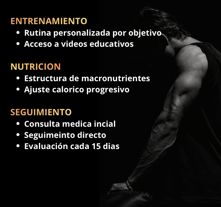 Entrenamiento estructurado, nutrición estratégica y seguimiento profesional para resultados reales y sostenibles.